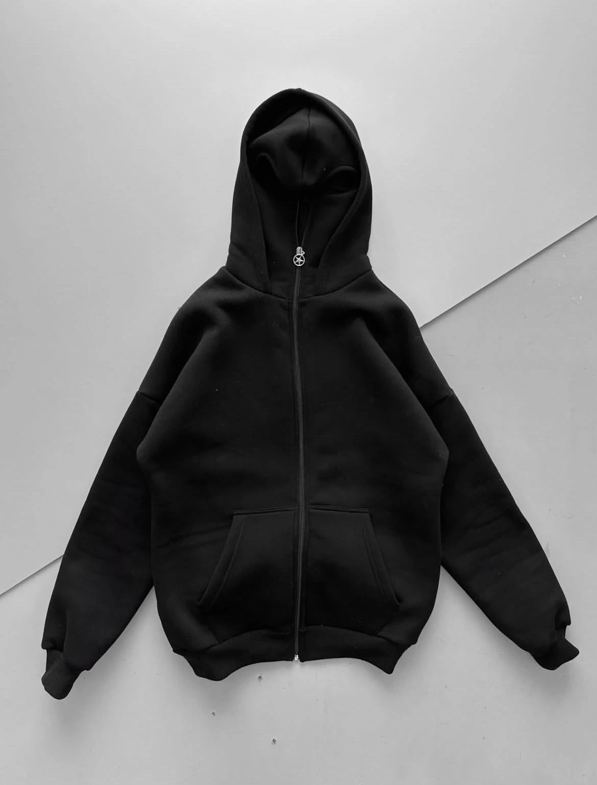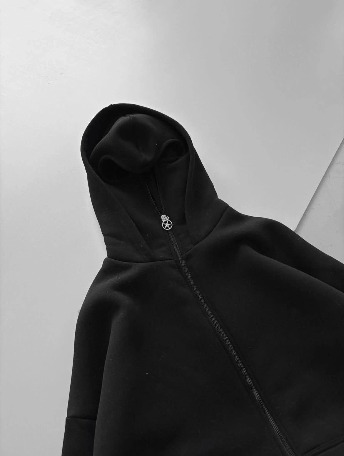 3 İPLİK KUMAŞ MASKELİ HIRKA - SİYAH