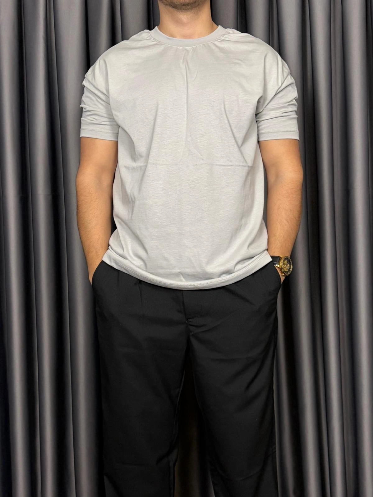Basic Kollar Dar Kesim Tshirt - Gri