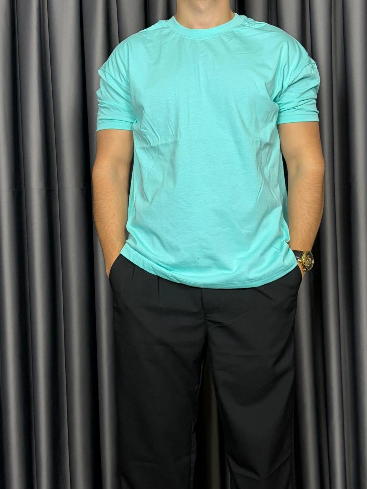 Basic Kollar Dar Kesim Tshirt - Mint Yeşili