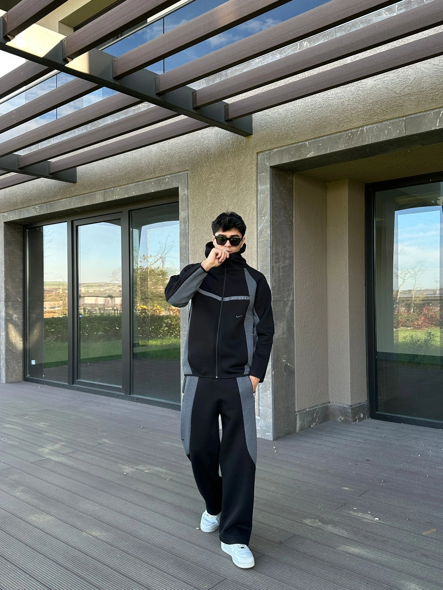 Eşofman takımı rahat kalıp modern duruş - siyah gri