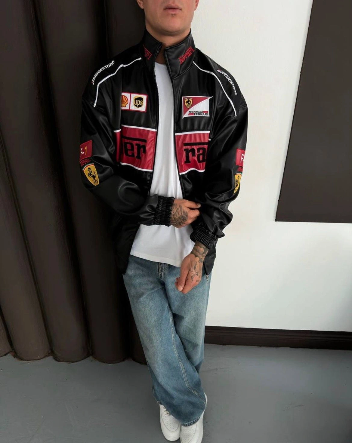 FERARİ OVERSİZE DERİ CEKET -SİYAH
