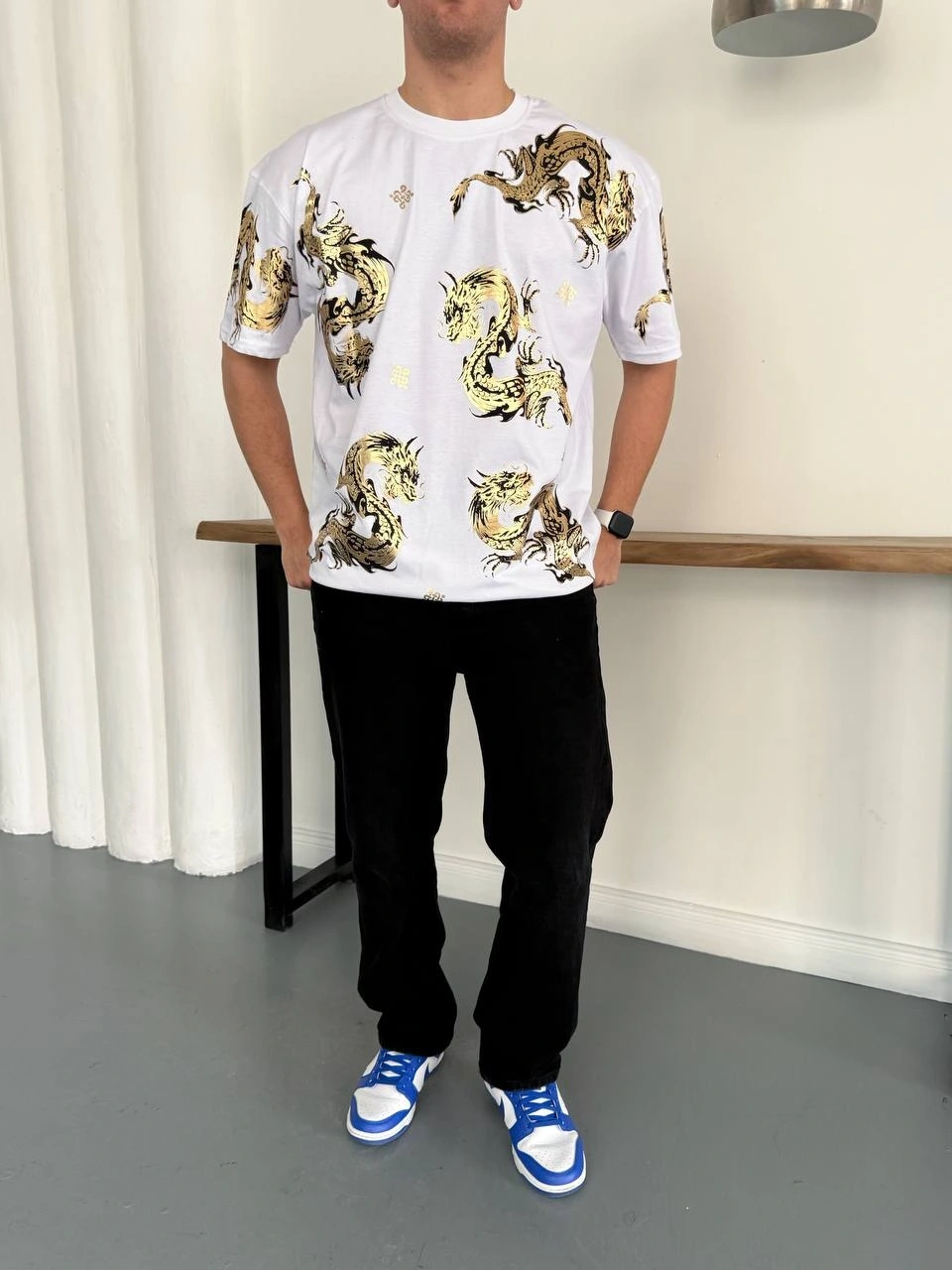 HOLOGRAM BASKI DETAY OVERSİZE TSHİRT -BEYAZ