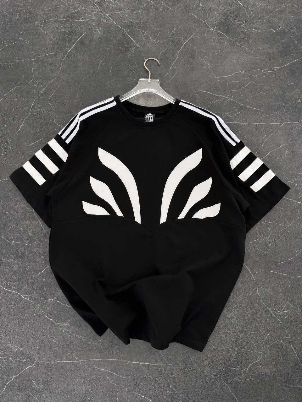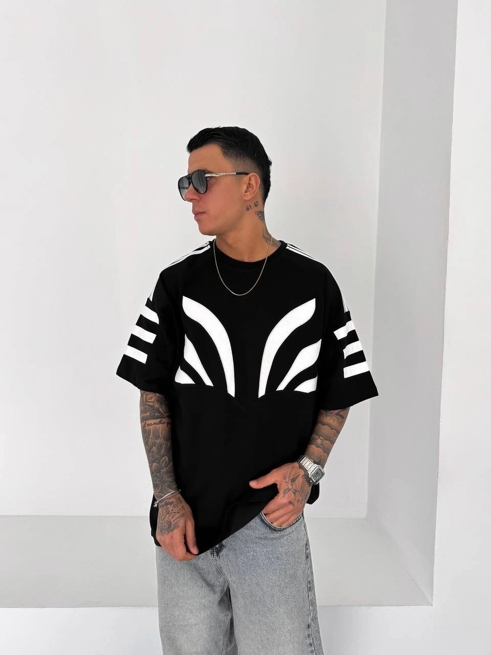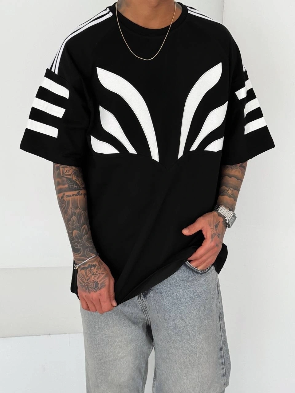 LOGOLU ÜRÜN NAKIŞ DETAY OVERSİZE TSHİRT -SİYAH