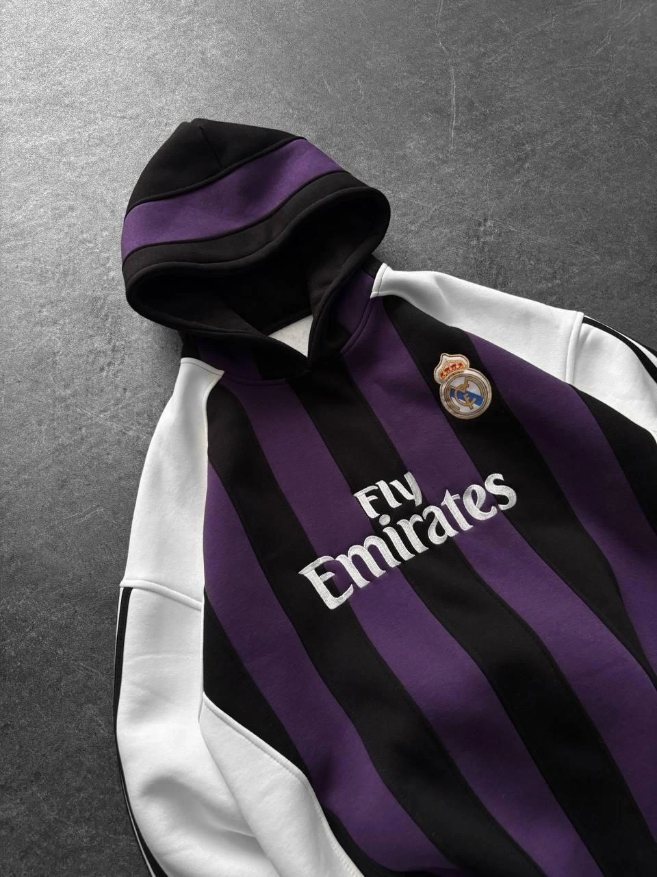 MADRİD ŞERİT KAPŞONLU OVERSİZE 3 İPLİK KUMAŞ SWEAT - MOR