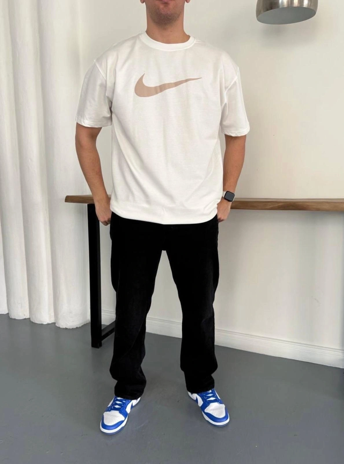 NKE BASKI DETAY OVERSİZE KALIP TSHİRT -BEYAZ