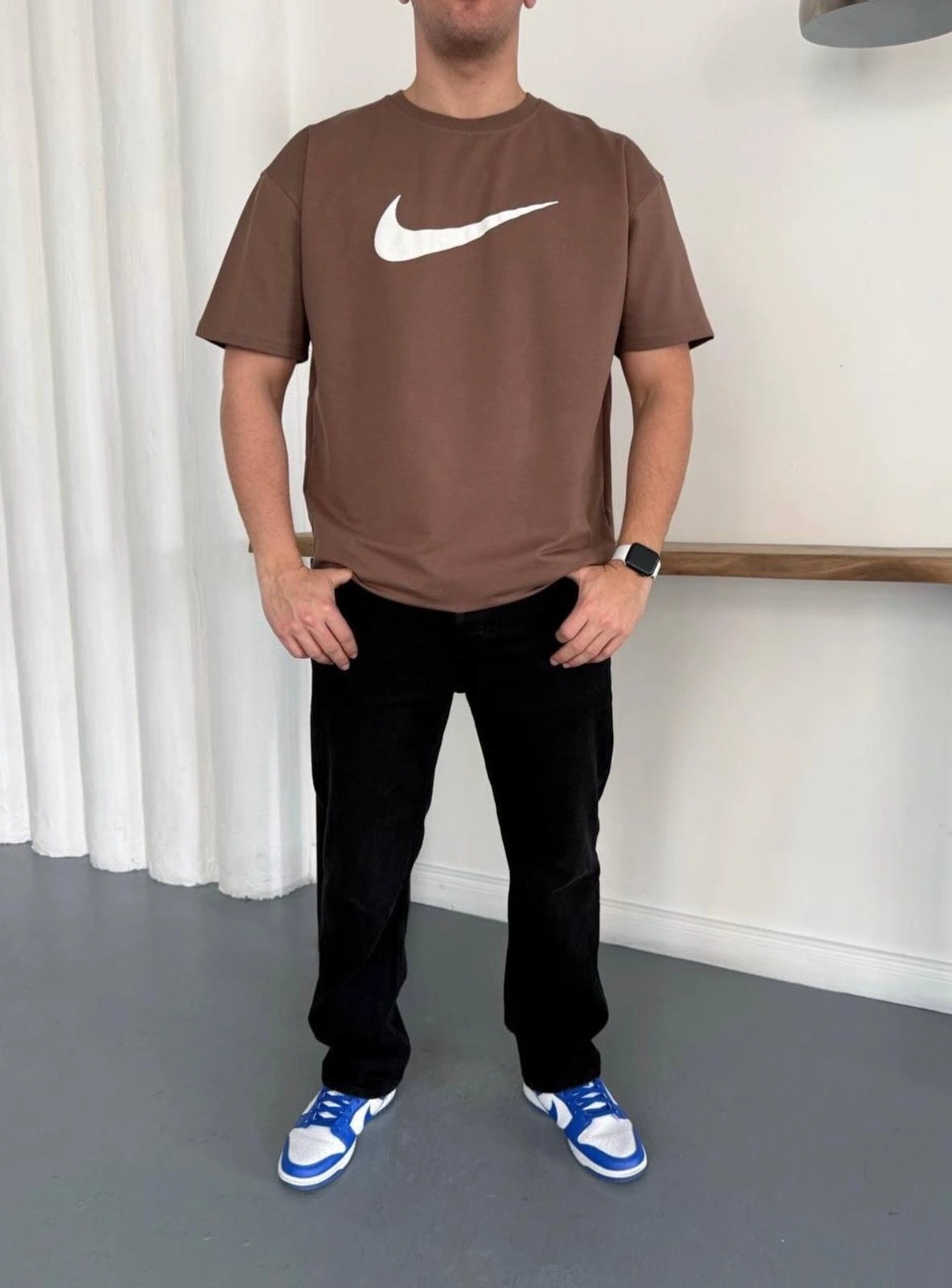 NKE AIR BASKI DETAY OVERSİZE TSHIRT -KAHVERENGİ