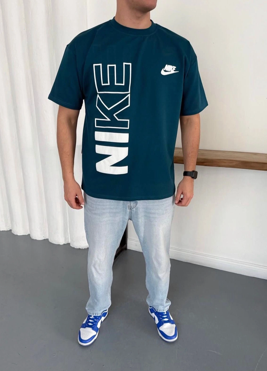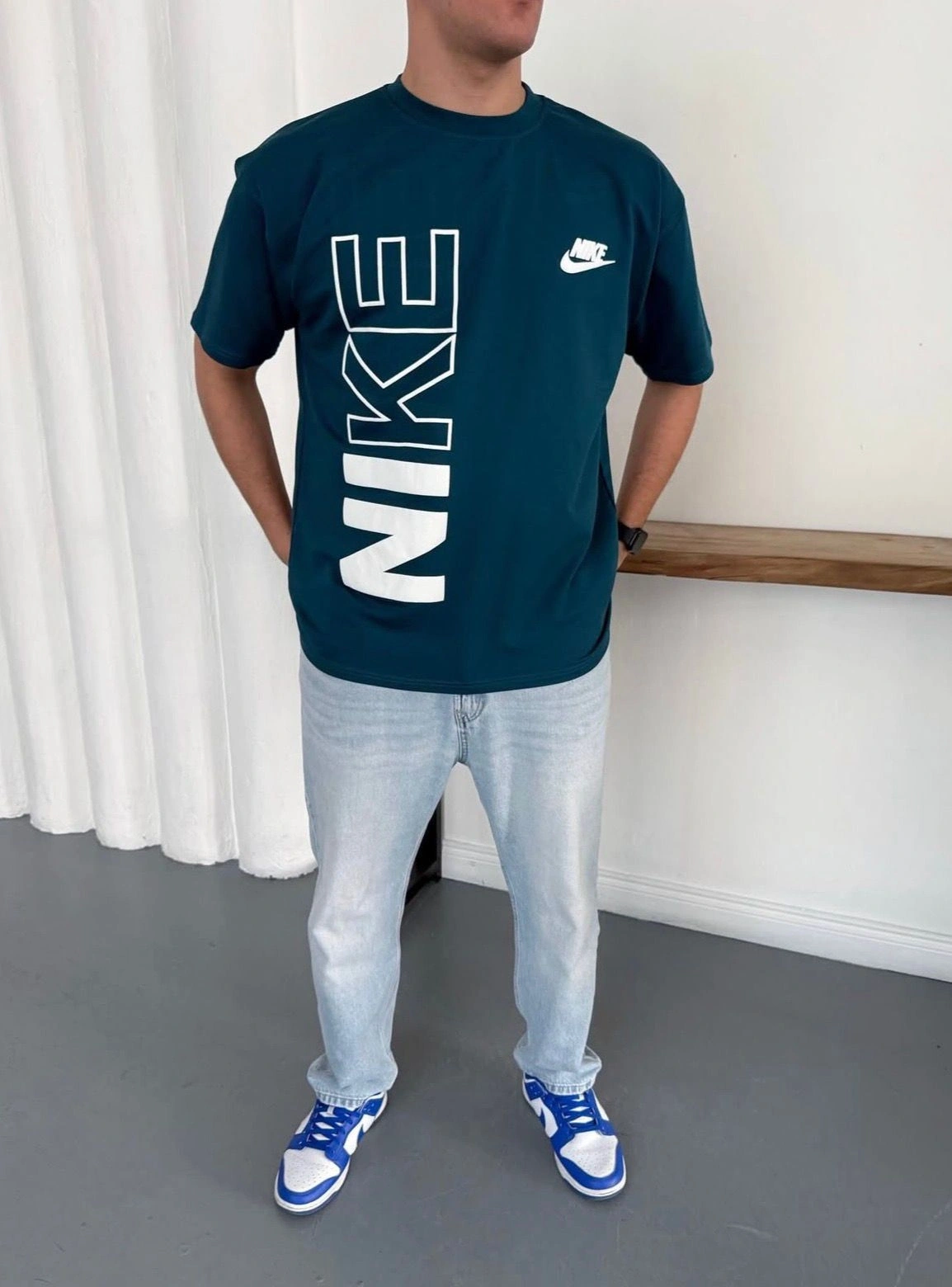 NKE BASKI DETAY OVERSİZE KALIP TSHİRT -MAVİ