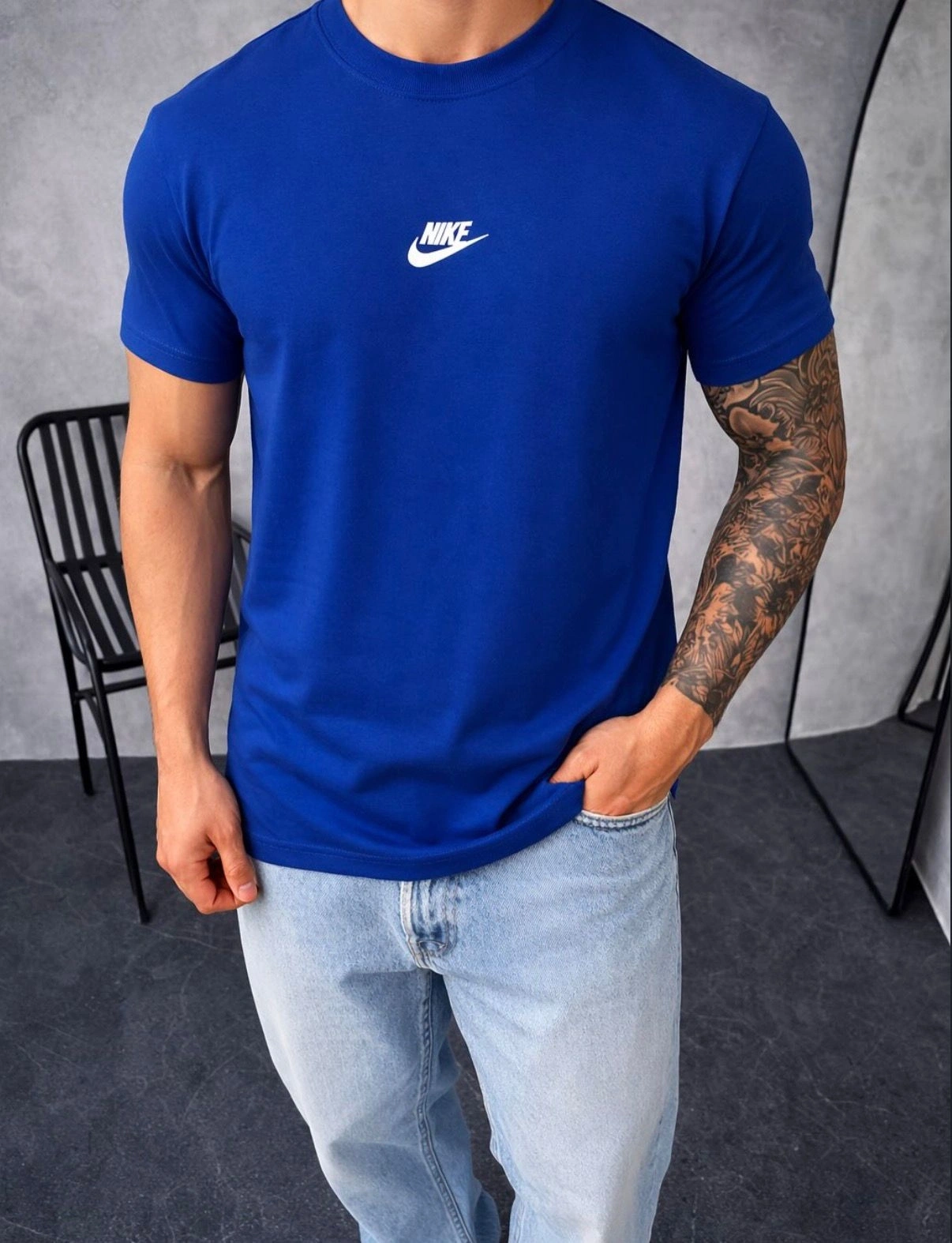 NKE BASKI DETAY OVERSİZE KALIP TSHİRT -MAVİ