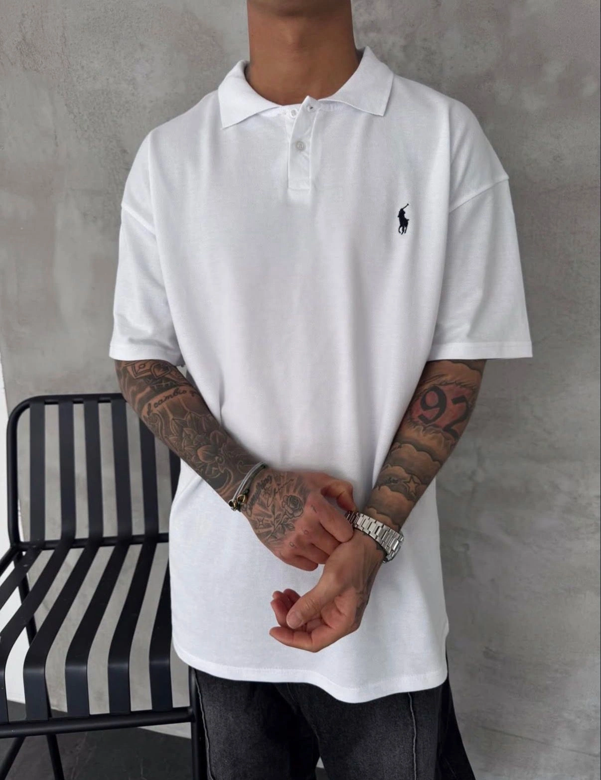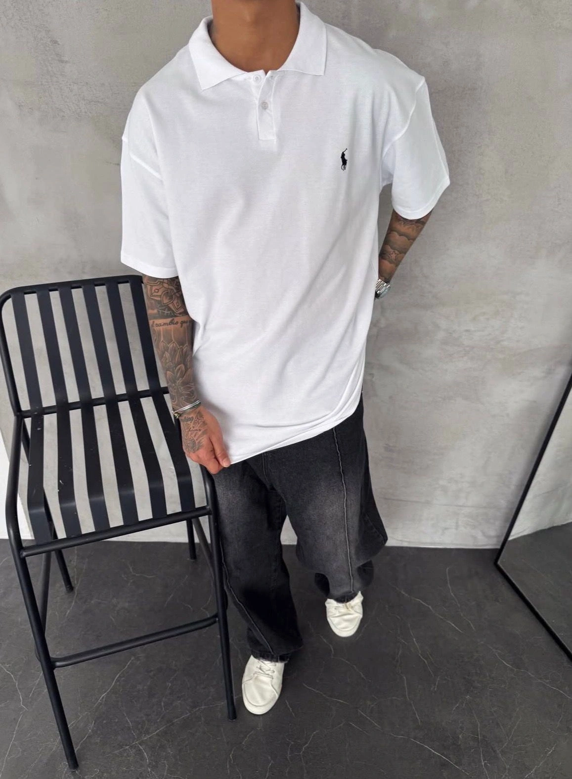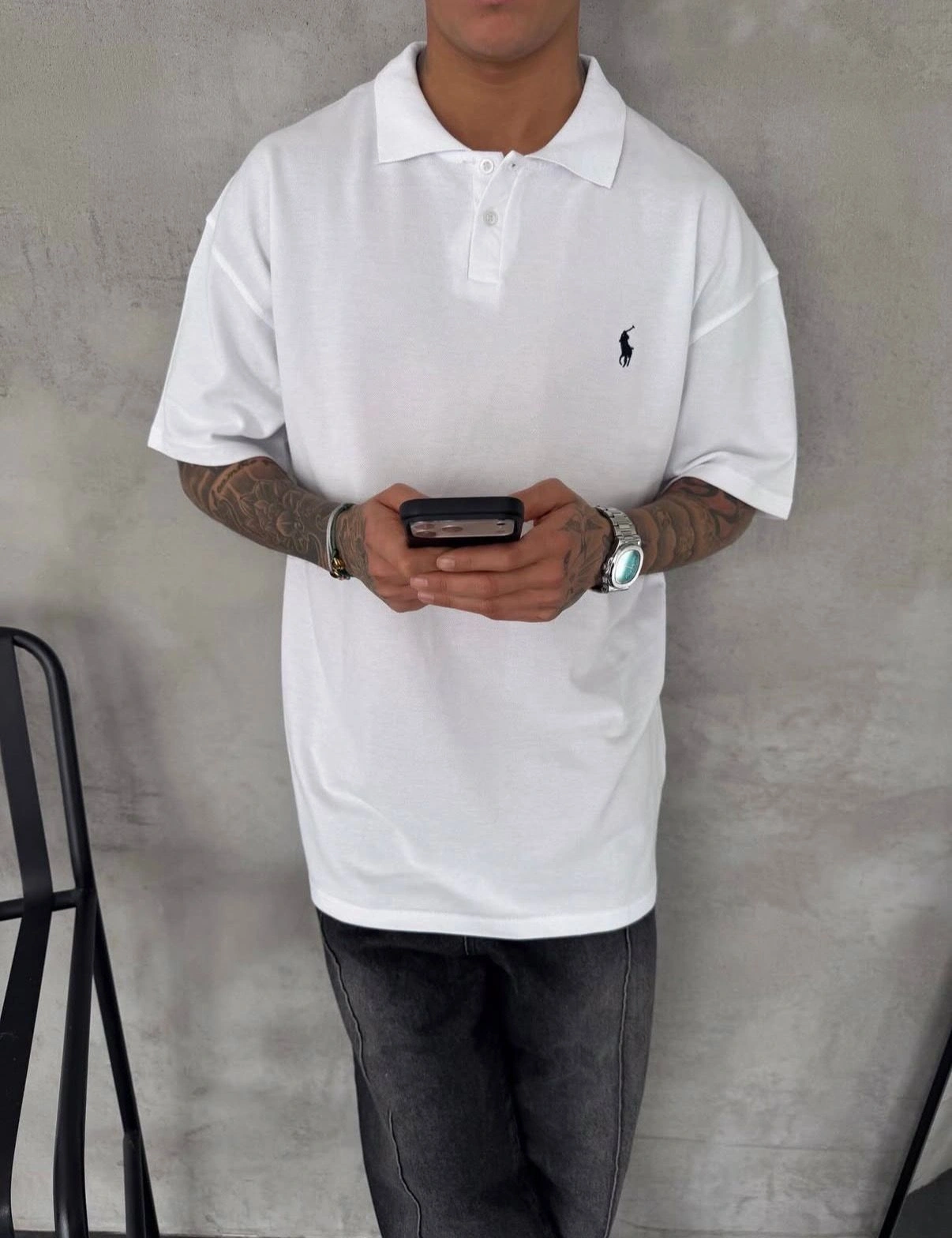 POLO YAKA OVERSİZE TSHİRT -BEYAZ