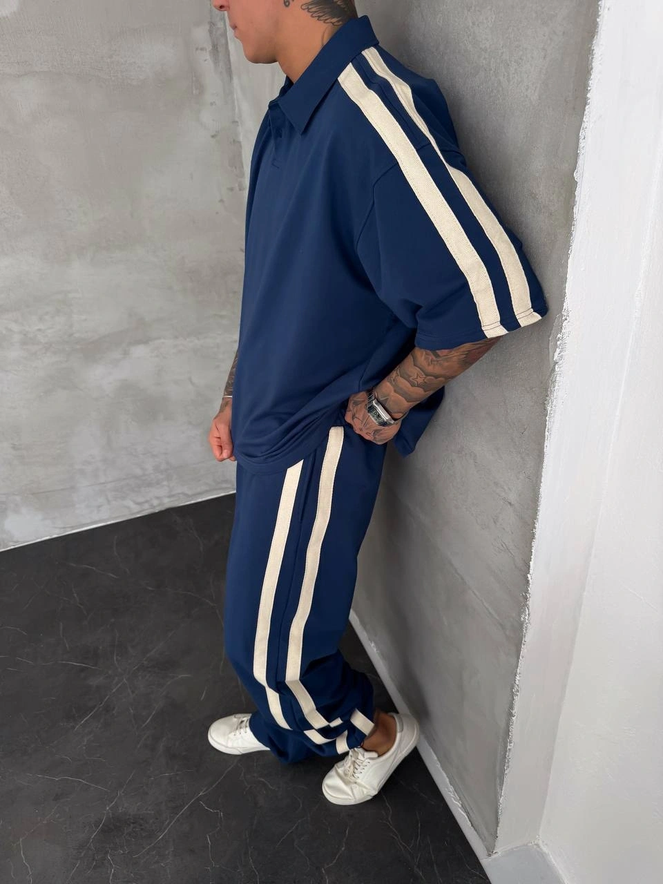 POLO YAKA ŞERİT DETAY BAGGY RAHAT KALIP EŞOFMAN TAKIM -LACİ