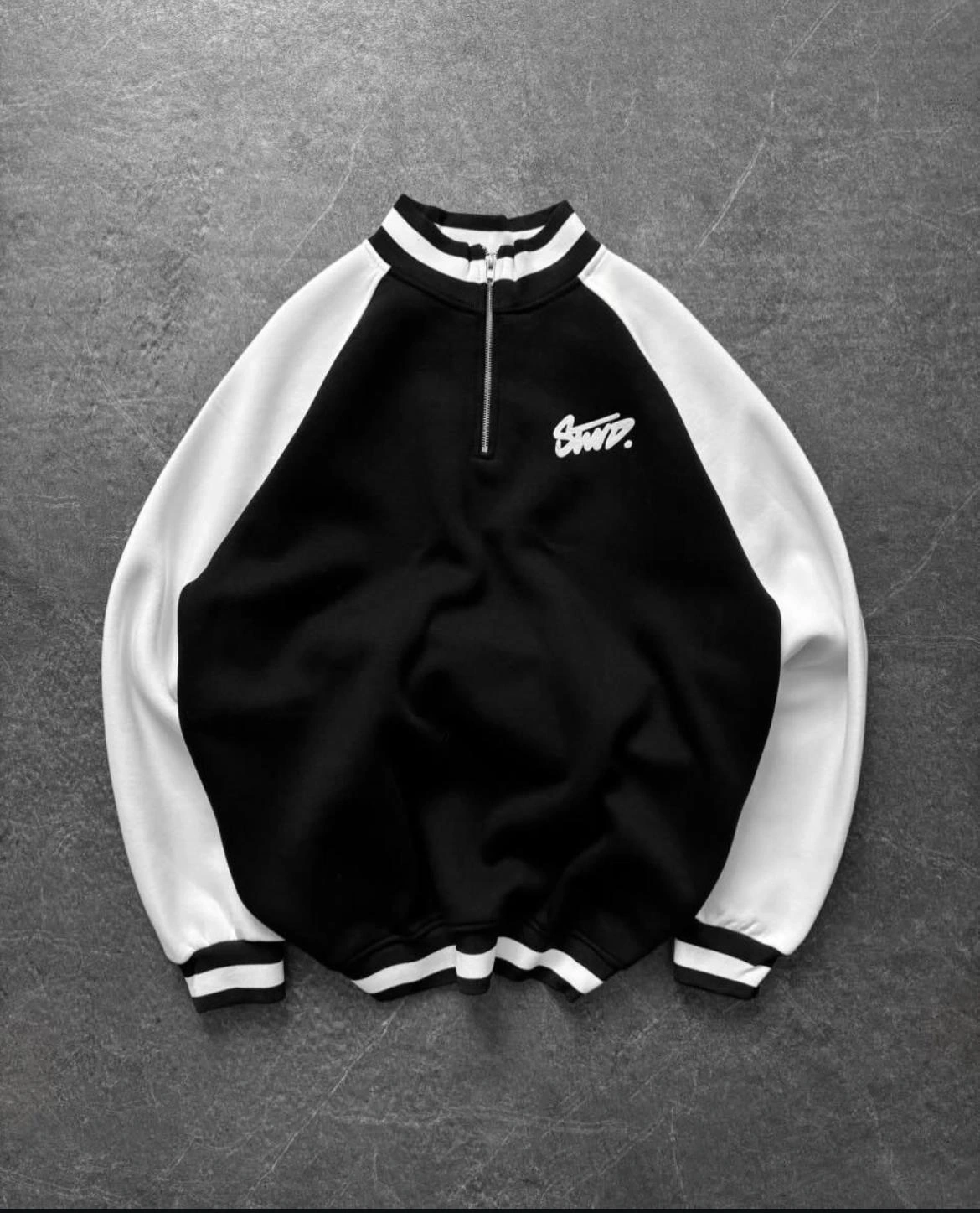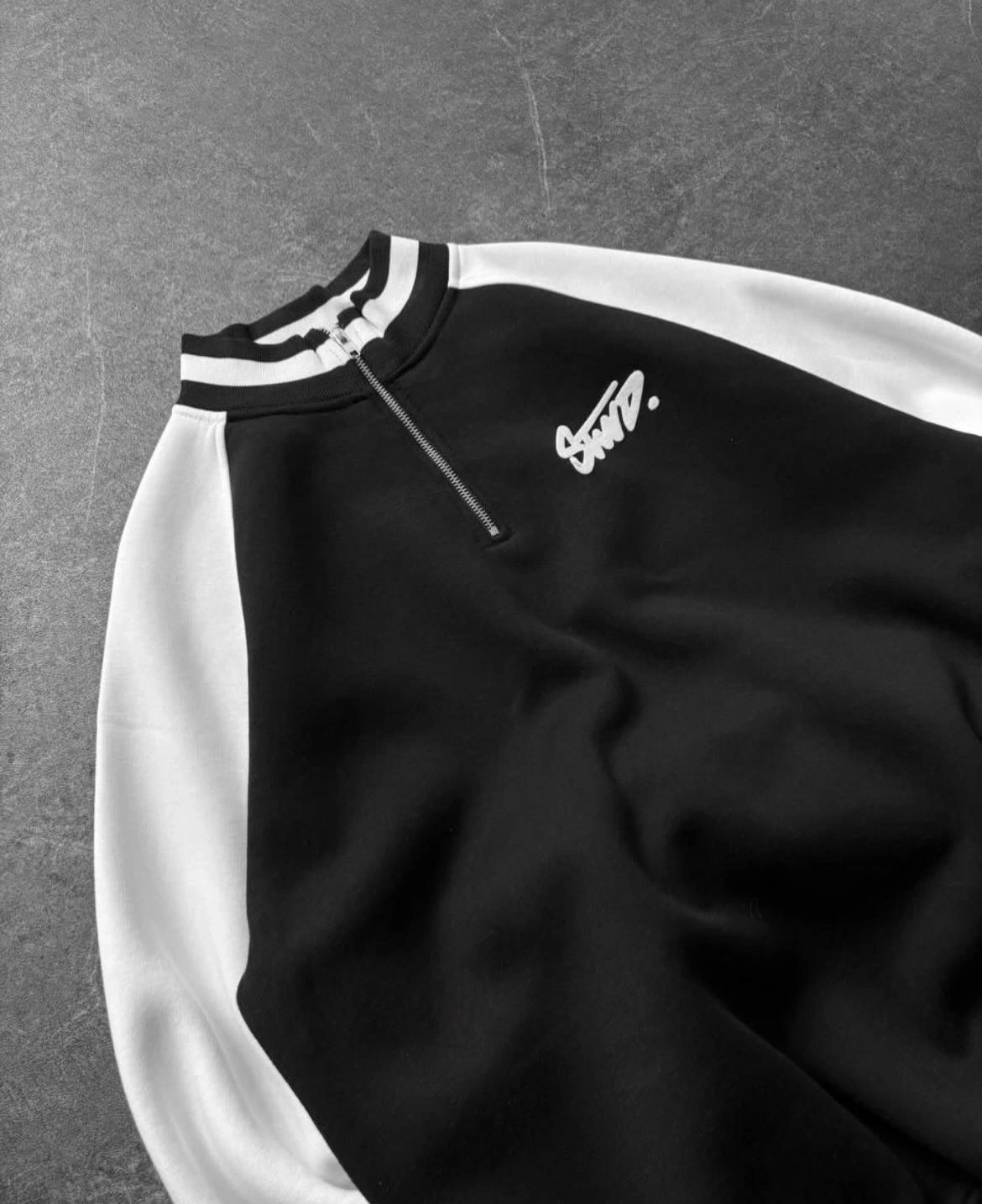 STW BASKI DETAY YARIM FERMUAR 3 İPLİK SWEAT - SİYAH