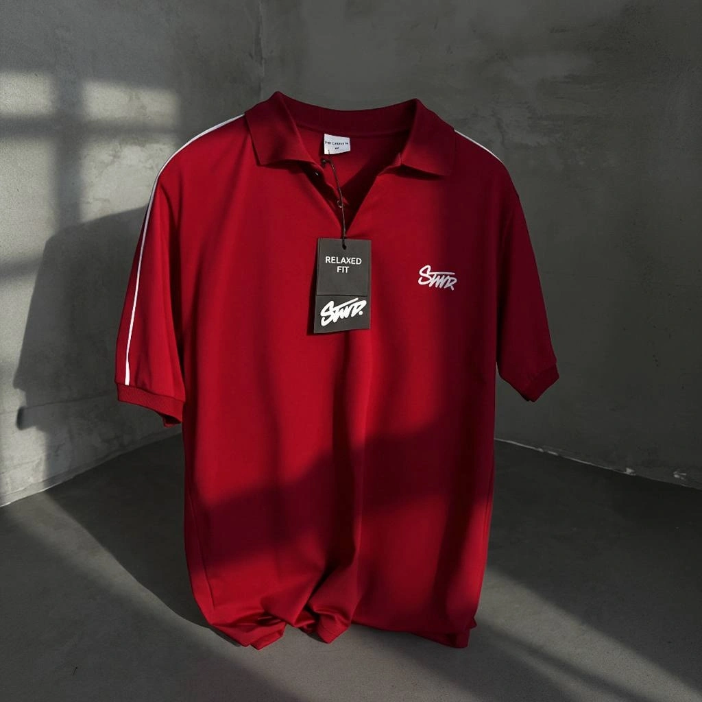 STWD NAKIŞ DETAY POLO YAKA OVERSİZE TSHİRT -KIRMIZI