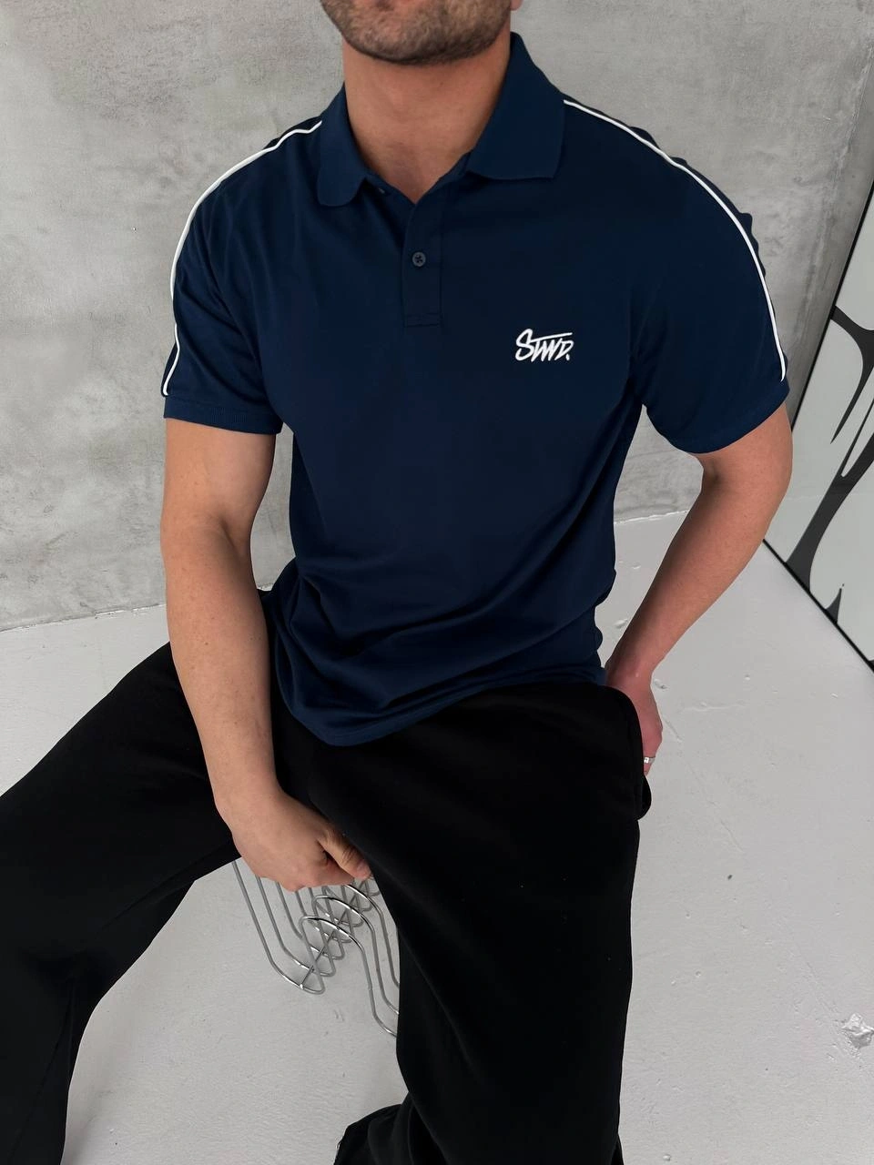 YIKAMALI SWD OVERSİZE POLO YAKA TSHİRT -SİYAH
