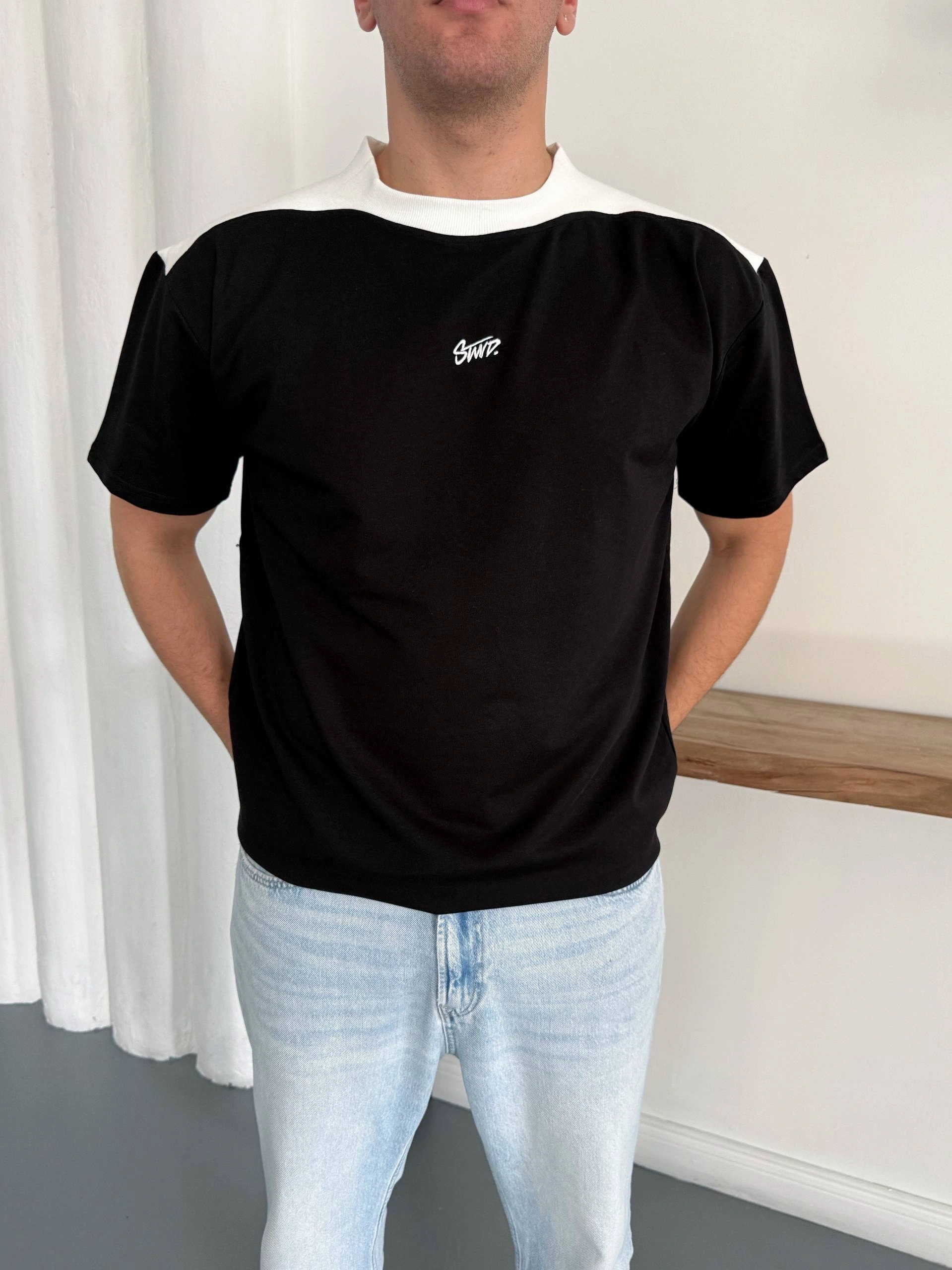 YIKAMALI SWD OVERSİZE POLO YAKA TSHİRT -SİYAH