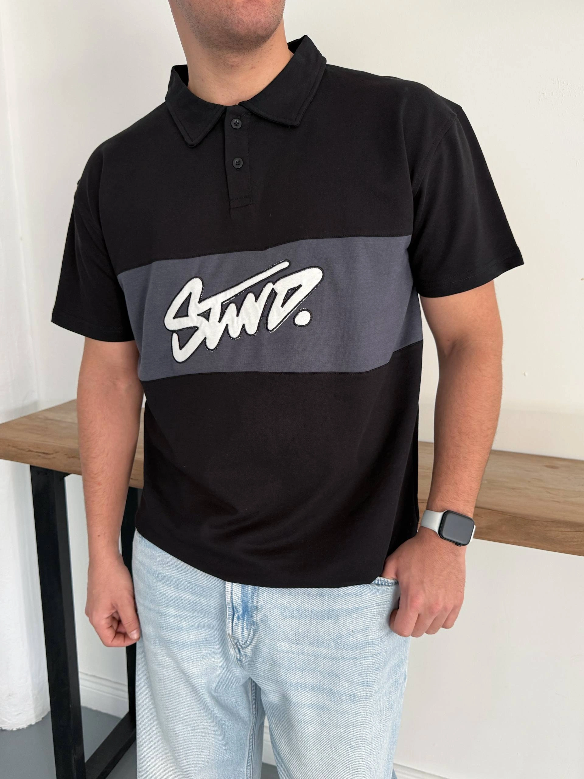 YIKAMALI SWD OVERSİZE POLO YAKA TSHİRT -SİYAH
