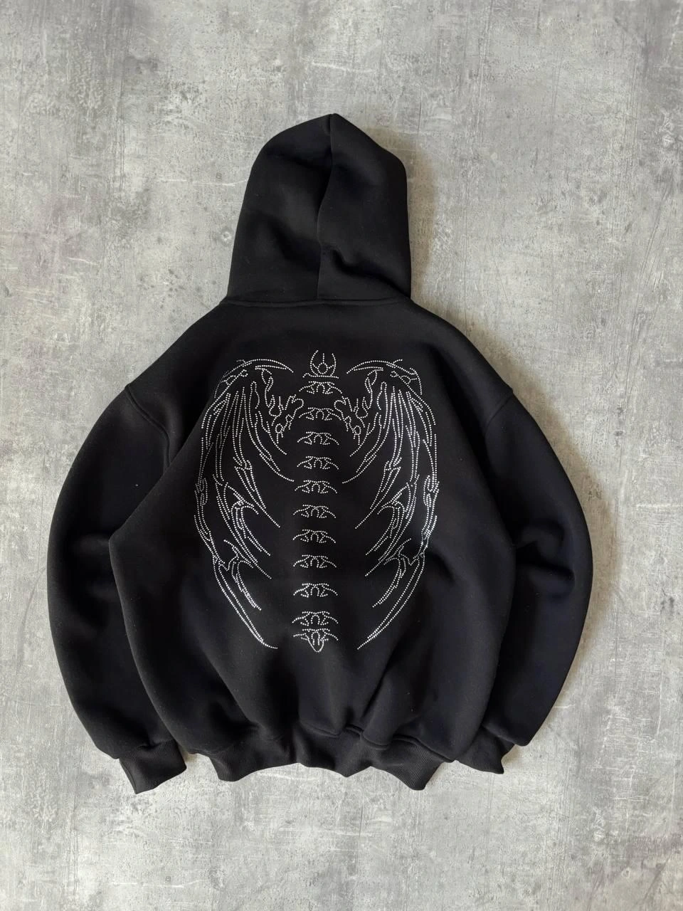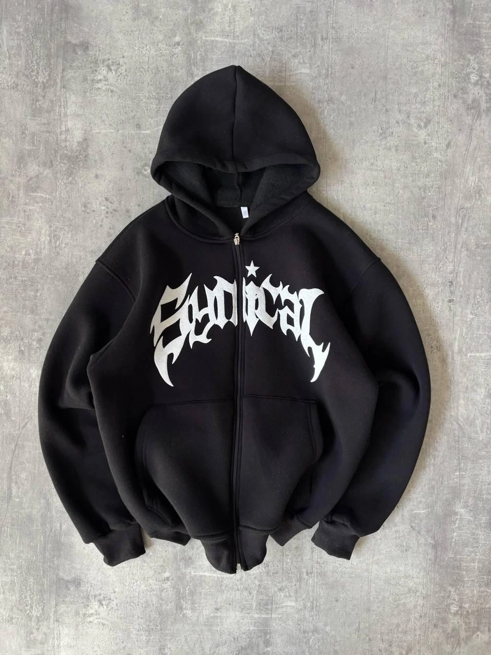 SYNİCAL TAŞLI OVERSİZE 3 İPLİK HIRKA - SİYAH