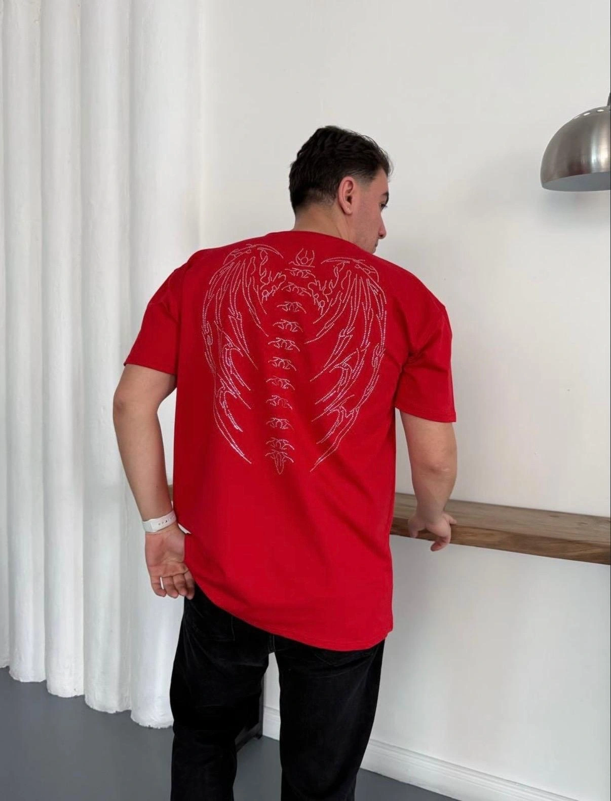 TAŞLI OVERSİZE TSHİRT -KIRMIZI