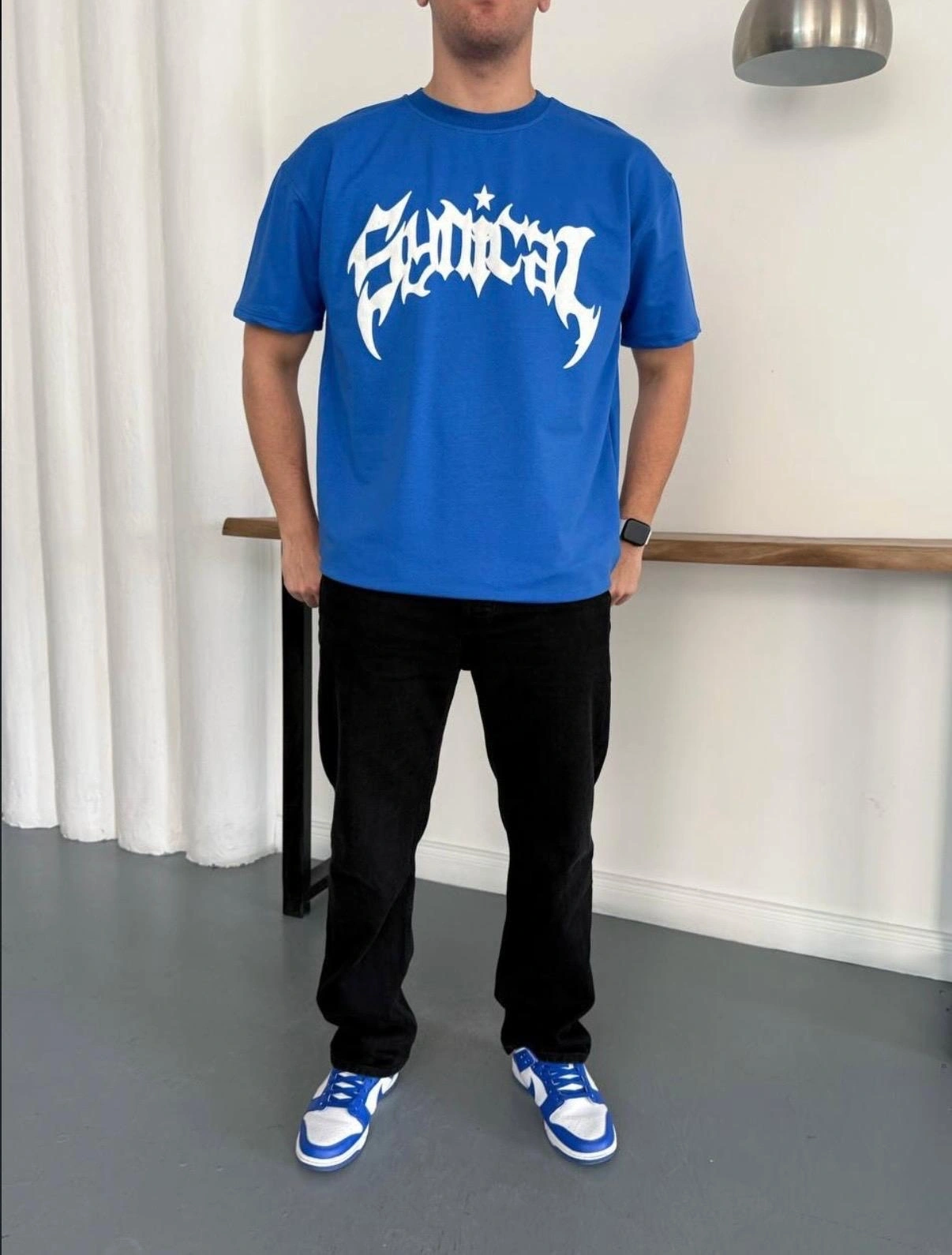 NKE BASKI DETAY OVERSİZE KALIP TSHİRT -MAVİ