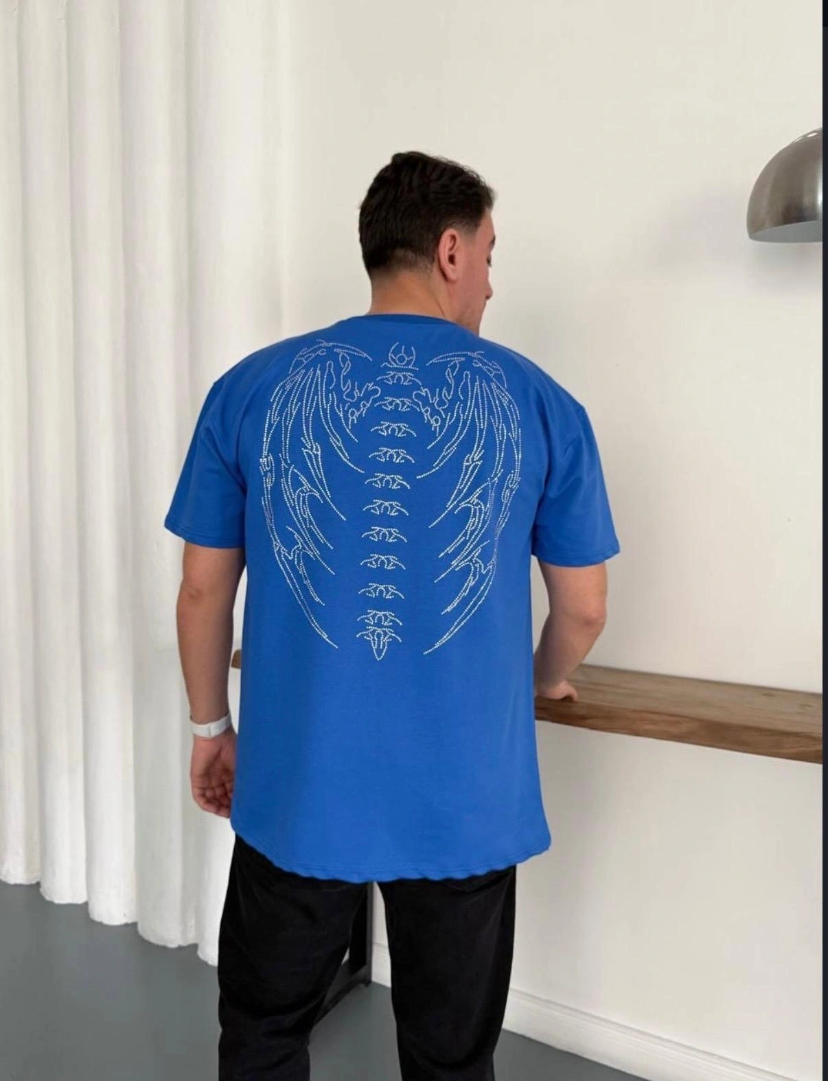 TAŞLI OVERSİZE TSHİRT -MAVİ