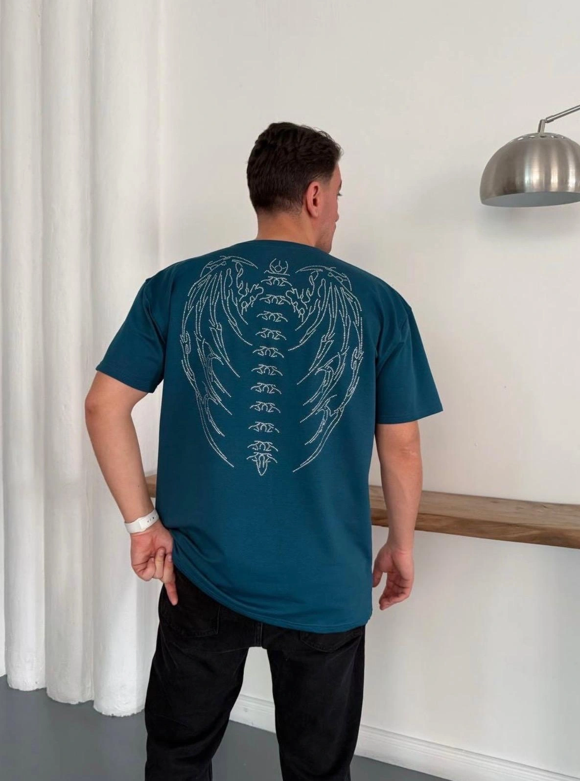 TAŞLI OVERSİZE TSHİRT -TURKUAZ