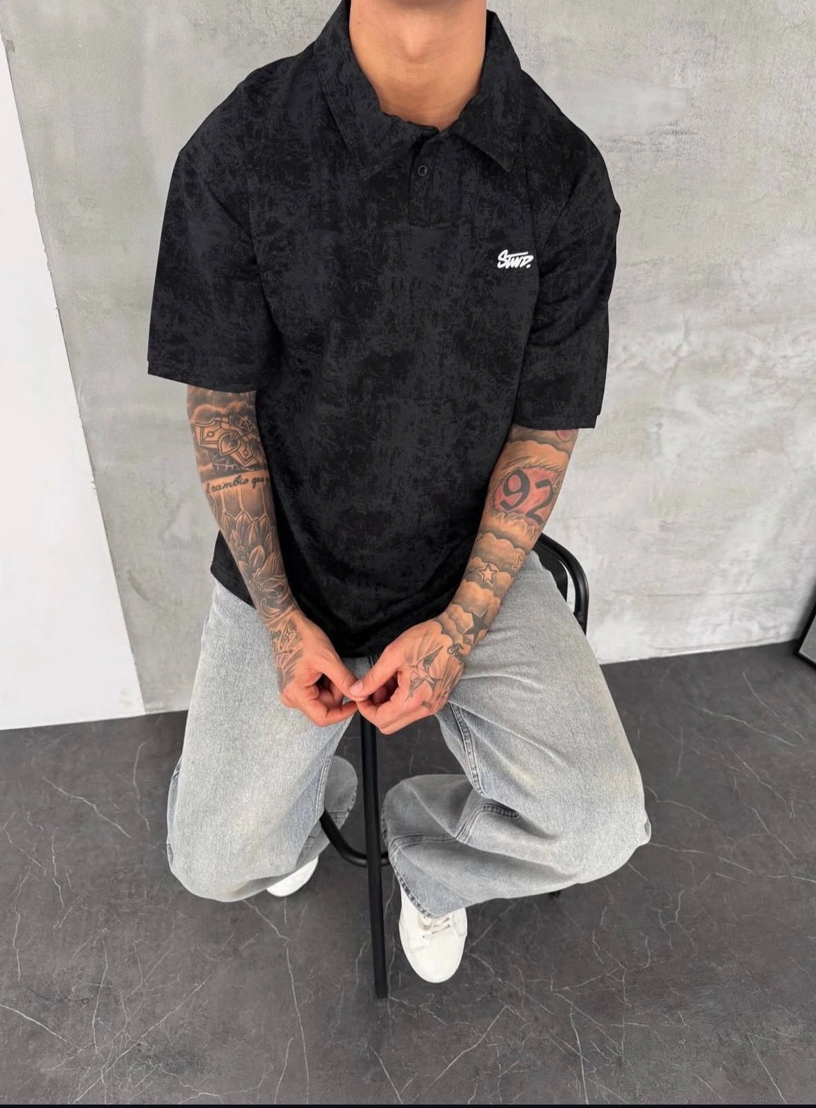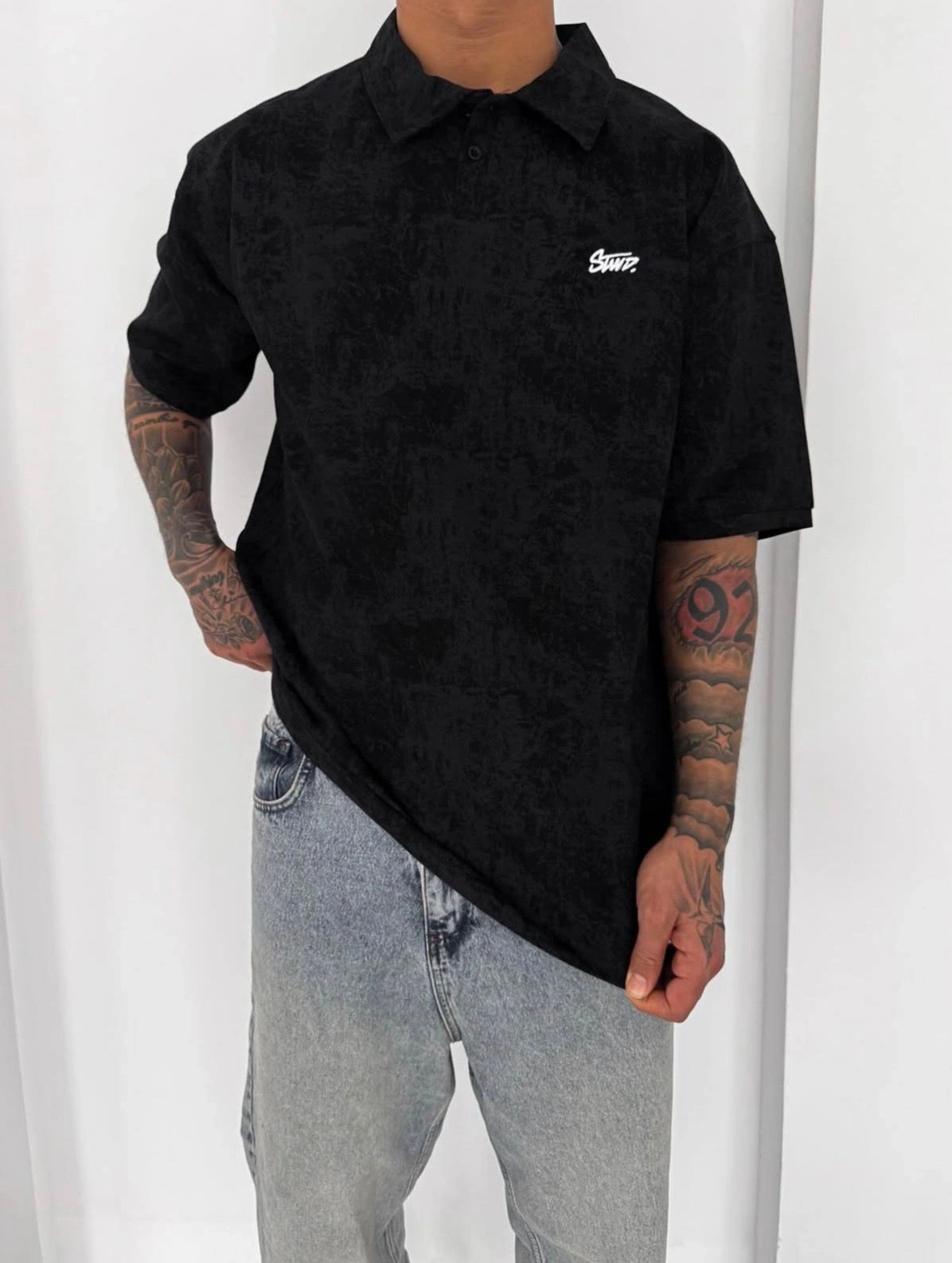 YIKAMALI SWD OVERSİZE POLO YAKA TSHİRT -SİYAH
